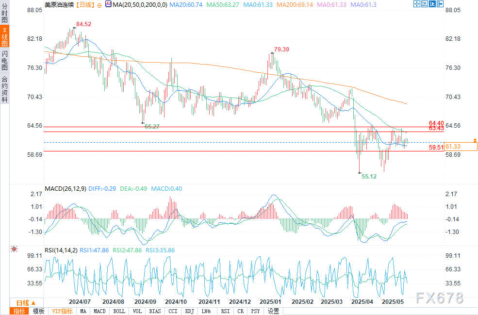 周二(5月27日)欧盘时段,原油期货价格保持稳定,WTI原油最新交易价接近61.31美元,下跌0.36%,布伦特原油也呈现类似的小幅波动。交易员在本周晚些时候欧佩克+关键会议前采取观望态度。尽管贸易战紧张局势缓解,但该组织即将做出的产量决策带来的不确定性限制了市场上涨空间。