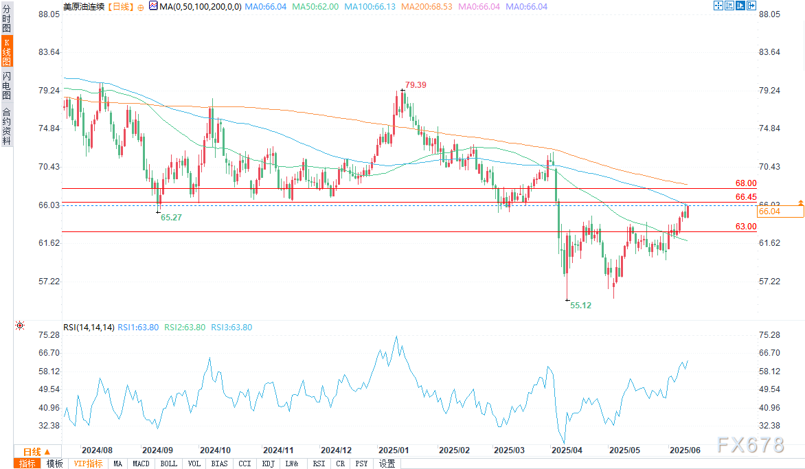 在地缘政治紧张局势、贸易担忧缓解及需求基本面稳定的支撑下,原油前景仍偏看涨,前提是WTI能收于66.45美元上方。