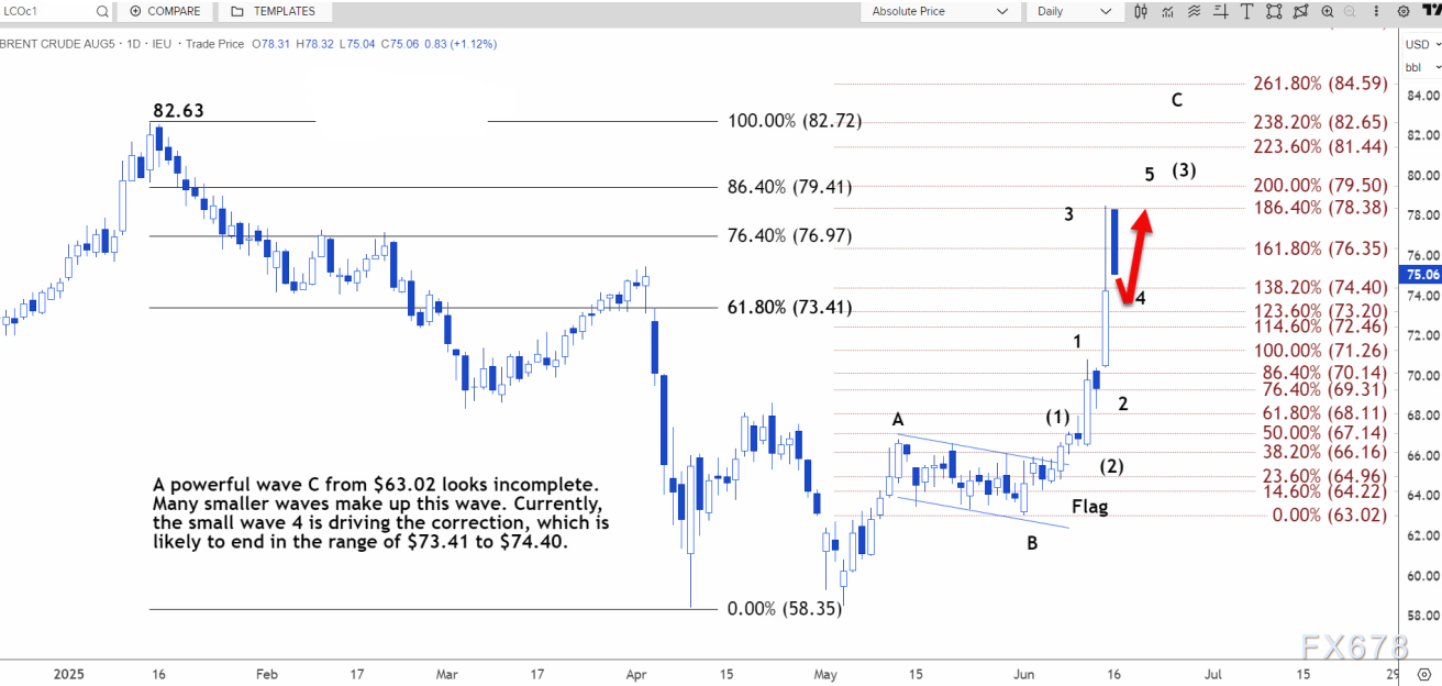 路透技术分析师指出,布伦特原油可能测试每桶 74.37 美元的支撑位,跌破该水平可能引发油价跌至 72.81 美元至 73.44 美元的区间。
