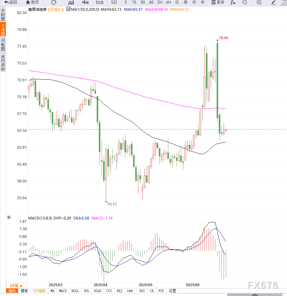 如果WTI能有效突破66.50美元附近的短期阻力位,则有望进一步上探至68.80美元区间;反之,如再次跌破64.00美元,将打开通往62.50美元的下行空间。整体来看,油价短期内偏震荡反弹,但趋势尚未完全扭转。