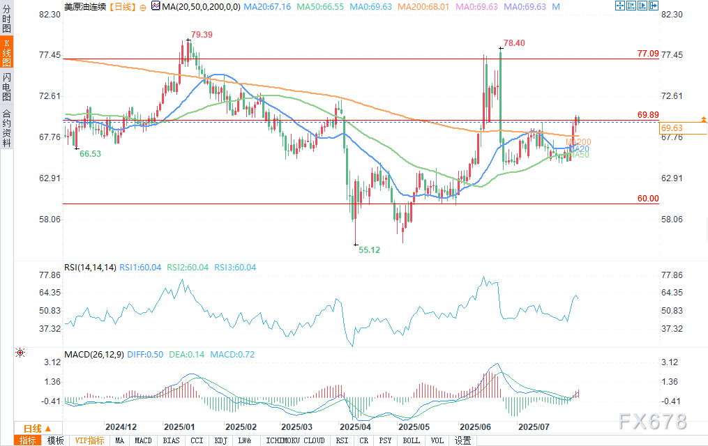 前景:在69.89美元下方谨慎看空,主要宏观风险仍在