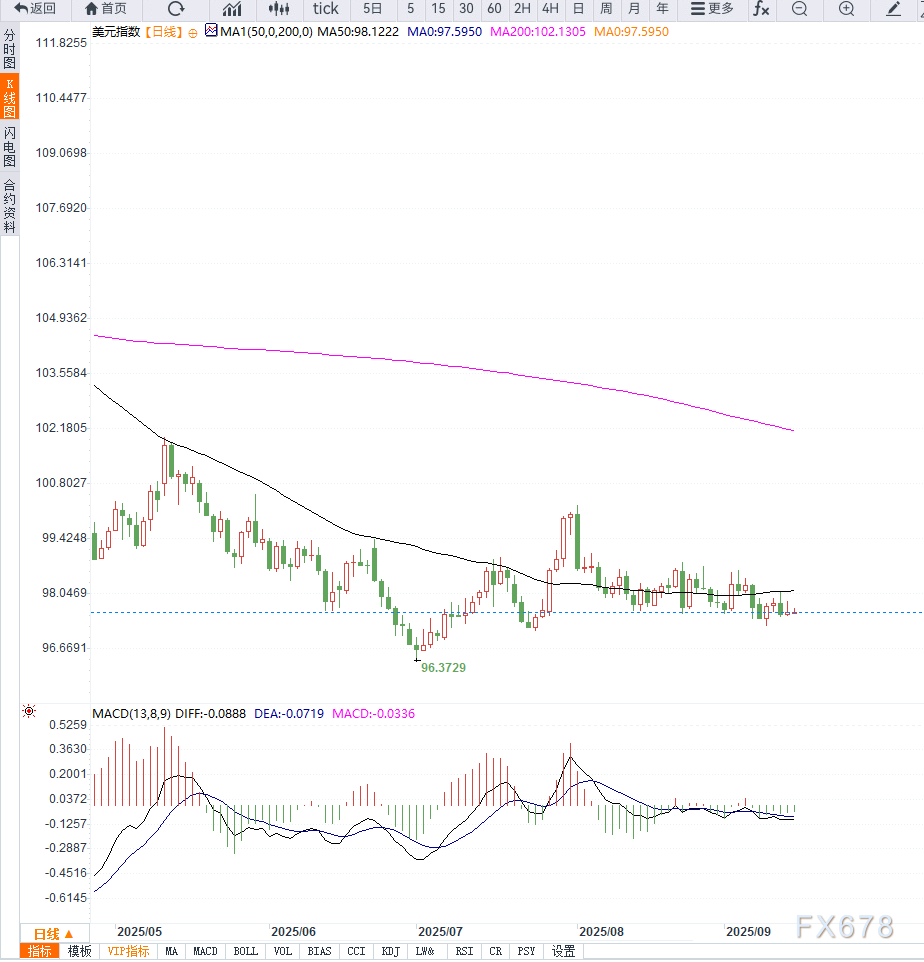 编辑观点:美元指数短期承压的核心原因在于美联储政策宽松预期升温以及美国就业市场的疲软迹象。若美联储如市场预期降息,DXY可能进一步回落至97附近甚至测试96.50水平;