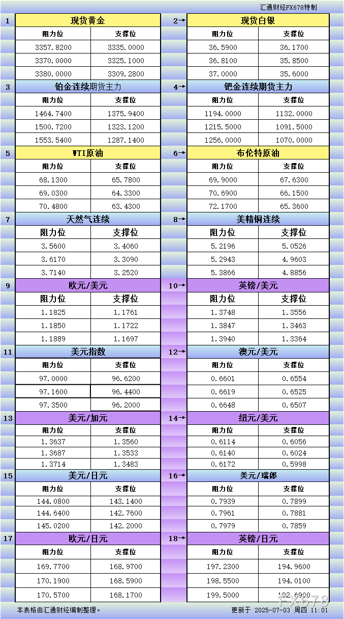 XM官网官网一张图看商品支撑阻力:金银油气+铂钯铜农产品期货(2025年7月1日